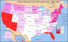La Burbuja inmobiliaria de los Estados Unidos fue una burbuja inmobiliaria que afectó a más de la mitad de los estados de los Estados Unidos. Los precios de la vivienda alcanzaron su punto máximo a principios de 2006, comenzaron a disminuir en 2006 y 2007 y alcanzaron nuevos mínimos en 2012.[2] El 30 de diciembre de 2008, el índice de precios de casas Case–Shiller index comunicó la mayor caída de precios en su historia.[3] La crisis crediticia causada por el estallido de la burbuja inmobiliaria -por la concesión de créditos hipotecarios a compradores de alto riesgo- provocó la crisis hipotecaria de 2007 y la crisis bursátil de enero de 2008 que desembocó en la Gran recesión tanto en los Estados Unidos como mundialmente.[4][5]
