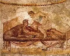 Los baños públicos eran también lugares habituales de las prostitutas durante el imperio. La desnudez –sobre todo si los hombres y las mujeres se bañaban juntos, como podía suceder–, que se ofrecía como la bebida en las tabernas, era un aliciente que conducía a los clientes a compañeras sexuales disponibles. Los baños también ofrecían comida y otros servicios, como masajes. De la misma manera que una masajista podía pasar con facilidad a proporcionar servicios sexuales, los empleados de los baños combinaban su trabajo rutinario, como vigilar la ropa mientras los clientes se bañaban, con el de proporcionar sexo a los clientes que lo deseaban. De hecho, en las termas suburbanas de Pompeya, las más excavadas, hay pinturas explícitas que muestran a personas participando en actividades sexuales cada vez más audaces (o divertidas), así como compartimentos sobre los estantes donde se guardaba la ropa antes de entrar en los baños. También había habitaciones en las plantas superiores, e incluso una entrada aparte desde la calle para los clientes que venían a los baños sólo a mantener relaciones sexuales. Un grafiti en la pared exterior dice lo siguiente: “Quien quiera que se siente aquí, lea esto antes que nada: si quiere fornicar, busque a Attis; puede ser suya por un denario” (CIL 4.1751).