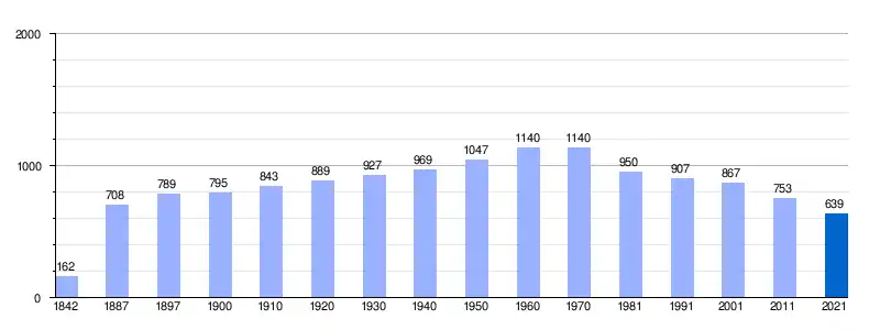 Gráfica de evolución demográfica de Burganes de Valverde[7] entre 1842 y 2021 |
