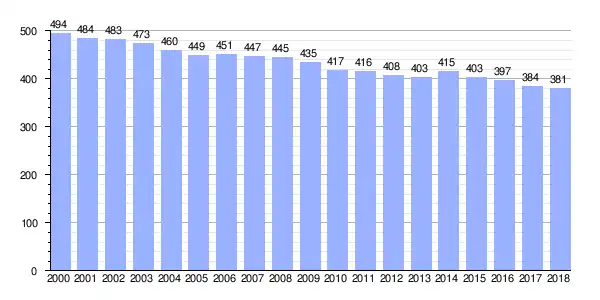 Gráfica de evolución demográfica de Burres entre 2000 y 2018 |