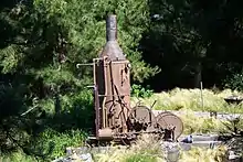 - Otro burro de vapor se exhibe a lo largo de un sendero interpretativo en el Museo de la Tala de la Sierra Nevada en el condado de Calaveras, California, un museo al aire libre y con un edificio cubierto sobre la industria y la historia de la tala en la Sierra Nevada.[5]