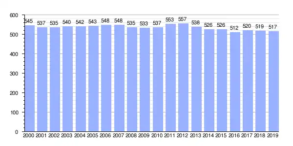 Gráfica de evolución demográfica de Buscás entre 2000 y 2019 |
