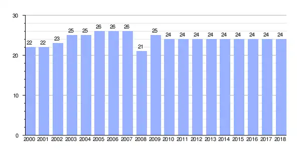 Gráfica de evolución demográfica de Bustelo entre 2000 y 2018 |