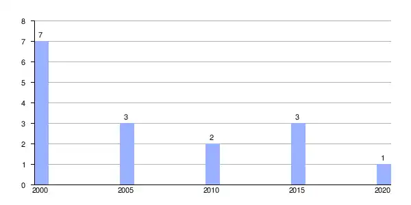 Gráfica de evolución demográfica de Busto entre 2000 y 2020
