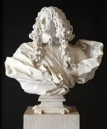 Bernini, no pudiendo reproducir en mármol los rasgos más característicos del sujeto en movimiento que lograba captar tan sólo en presencia del mismo, se concentró en la construcción del busto, representando el duque en el acto de volverse hacia la derecha y poniendo mayor realce en elementos secundarios como la peluca, la lechuguilla y más todavía la capa, la cual cubre el corte del tórax y los brazos y confiere a la masa marmórea una apariencia de ligereza; Jérôme Lalande en el Voyage d'un Français en Italie, fait dans les années 1765 et 1766 a propósito de la capa del busto afirma que "parece flotar en el aire".