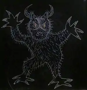 Se trata de un personaje muy feo representado a veces con dos caras y manos y pies con zarpas y que solía entrar por la cerradura de la puerta.[8][7][10]