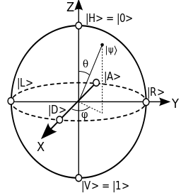 El ket es un vector que apunta en general a cualquier lugar de la superficie. Cualquier punto que no esté ni en la tabla de arriba ni en el círculo que pasa a través del se conoce colectivamente como polarización elíptica.