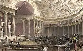 - Esta obra contiene una traducción derivada de «Chambre des pairs» de Wikipedia en francés, publicada por sus editores bajo la Licencia de documentación libre de GNU y la Licencia Creative Commons Atribución-CompartirIgual 3.0 Unported.