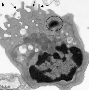 El retículo rugoso es abundante y se ubica en el sector infranuclear.[1]