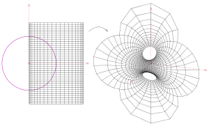 Es posible generar superficies arbitrarias mediante una inversión. Las fórmulas anteriores dan en cualquier caso representaciones paramétricas o implícitas de la superficie imagen, si las superficies se dan de forma paramétrica o implícita. En caso de una superficie paramétrica se obtiene: