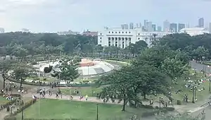El Círculo Agrifina estaba destinado a ser una gran plaza cívica que uniera el Edificio Capital Nacional planeado con 5 edificios en forma de cuña que incluían los Edificios de Finanzas y Agricultura. Después de la Segunda Guerra Mundial, cuando se decidió que la capital de Filipinas se trasladaría a Ciudad Quezón, la entonces plaza se convirtió en una rotonda. Se permitió el tráfico de vehículos en las carreteras hasta finales de la década de 1960, cuando se consolidó el parque Rizal y la mayoría de las carreteras que atravesaban el parque eran peatonales. Se instaló una fuente y una pista de patinaje en la parte central.[3]