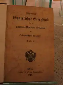 Fue proclamado el 1 de junio de 1811, entrando en vigor para la totalidad del Imperio Austriaco de habla alemana el 1 de enero de 1812. Fue asumido por la República de Austria en 1918 y aplicado también en Burgenland desde 1922.