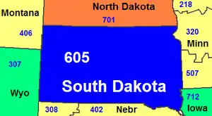 605 es el código de área estadounidense para todo el estado de Dakota del Sur, uno de los pocos estados que posee un único código junto con Dakota del Norte que posee el 701.