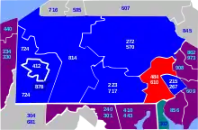 Mapa del estado de Pennsylvania, en rojo el área de los códigos 610, 484 y el (futuro) 835