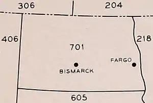 701 es el código de área norteamericano para todo el estado de Dakota del Norte, uno de los pocos estados que posee un único código junto con Dakota del Sur que posee el 605.