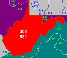 304 y 681 son unos códigos de área de los Estados Unidos.