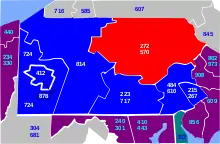 Las ubicaciones son aproximadas. Los códigos de área 570 y 272 solo pueden cubrir una porción de estos condados y pueden extenderse a áreas vecinas no listadas: