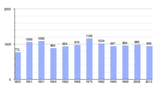 Gráfica de evolución demográfica de Coteaux-du-Blanzacais entre 1800 y 2013