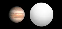 ![]() Comparación de tamaño de COROT-2b con Júpiter. | ||