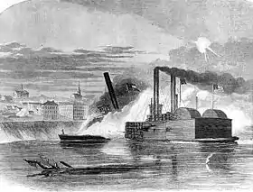 ![]() El USS Queen of the West ataca al CSS Vicksburg. | ||
