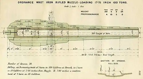 - Handbook for RML 17.72 inch gun, 1887, HMSO publications.