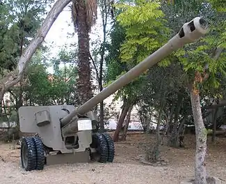![]() Un cañón soviético M1944/BS-3 de 100 mm en el Museo Batey ha-Osef de Tel Aviv, Israel (hacia 2005). | ||