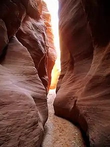 Las tormentas locales, así como las distantes, pueden causar en los cañones de ranura peligrosas y repentinas inundaciones y los guías expertos aconsejan evitar el senderismo en ellos si hay alguna señal de lluvia. En muchos cañones de ranura, puede ser necesario caminar varios kilómetros antes de encontrar una salida segura o de rescate.