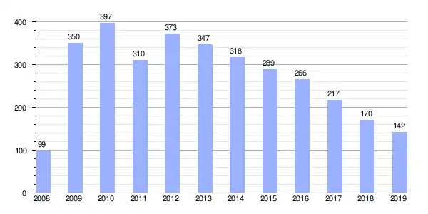 Gráfica de evolución de Deuda viva del Ayuntamiento de Cañaveral de León entre 2008 y 2019 |
