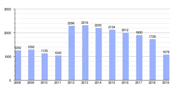 Gráfica de evolución de Deuda viva del Ayuntamiento de Cañete la Real entre 2008 y 2019 |