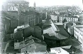 ![]() plaza de Portugalete con el mercado construido y sin despejar de casas viejas. A la izquierda la catedral | ||