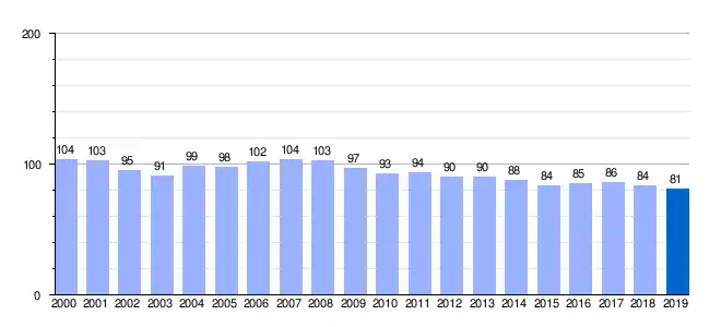 Gráfica de evolución demográfica de Cabañas de Tera[6] entre 2000 y 2019 |