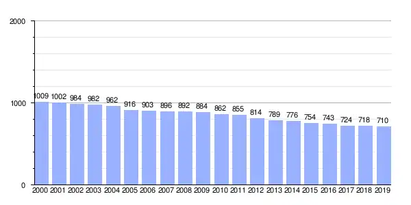 Gráfica de evolución demográfica de Cabaleiros entre 2000 y 2019 |