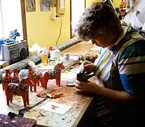 El arte del tallado y pintura de los caballos pequeños rápidamente floreció en la década de 1800, cuando la crisis económica de la región, comportó una mayor producción de los pequeños caballos, y se convirtieron en un elemento importante de trueque. Así la ejecución de caballos que empezó como algo para pasar el tiempo durante los largos meses de invierno, pronto se convirtió en un negocio con el cual se hacían trueques a cambio de artículos para el hogar. Las familias rurales dependían de la producción de caballos para ayudar a mantener la economía del hogar, mientras la habilidad de la talla y pintura se fue transmitiendo de generación en generación.