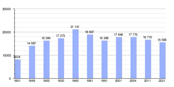Gráfica de evolución demográfica de Cabeceira de Basto entre 1801 y 2021 |