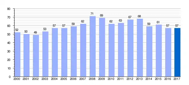 Gráfica de evolución demográfica de Cabezuela de Salvatierra[4] entre 2000 y 2017 |