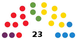 Grupos representados | CC: 7 PSOE: 7 PP: 4 NC: 3 PODEMOS: 2 | |