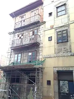 - Cuesta del Hospital nº 17: curioso edificio con fachada de sillería, actualmente amenazando ruina, ejemplo de las viejas construcciones desaparecidas de la zona.
