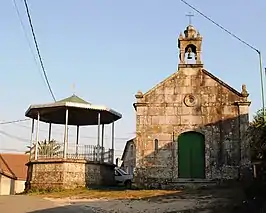Destaca en la parroquia el Pazo da Gaviñeira, edificio con planta en U situado en el lugar de A Pousa, con una de las alas rematada por una torre cuadrada y la otra dotada de una galería con arcos al largo de la fachada. En la puerta puede verse inscrito "LA MANDO HACER D. XACINTO VALENZUELA EN 18 "... ".[12] En una explanada fluvial al lado del río Caselas encontramos un molino moledor con una planta rectangular, paredes de cantería y cubierta a dos aguas, presentando dos agujeros del infierno y en el lado contrario dos canalizaciones.[13] En cuanto a la arquitectura contemporánea sobresale la vivienda-farmacia construida en el lugar de O Cerdeiral por los arquitectos Faustino Patiño y Juan Ignacio Prieto, en un ancho edificable de tan sólo 5 metros. Ha recibido diversos reconocimientos entre los que se encuentran el primer premio en el XIV Premio COAG de Arquitectura en la categoría de Obra primera, Obra de Arquitectos en el comienzo de su carrera profesional, o el premio COAG Gran de Area 2008, así como su selección para la XI Bienal Española de Arquitectura y Urbanismo.[14]