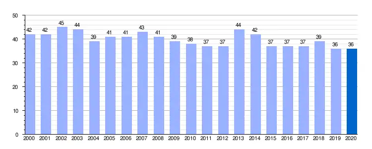 Gráfica de evolución demográfica de Cabria entre 2000 y 2020 |