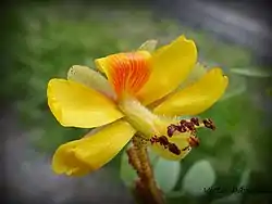 Caesalpinia: nombre genérico que fue otorgado en honor del botánico italiano Andrea Cesalpino (1519-1603).[4]