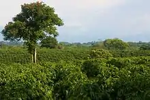 El café fue el producto primordial dentro de las actividades comerciales colombianas, registrando exportaciones de hasta 2560 sacos. Desde los años veinte, Colombia ocupó el primer lugar como productor mundial de café suave.[11] La asociación que contribuye a promover el cultivo de café en Colombia y su exportación a mercados internacionales, con la misión de procurar el bienestar de los caficultores colombianos es la Federación Nacional de Cafeteros de Colombia. Los principales departamentos productores del café en Colombia son: Nariño, Norte de Santander, Antioquia, Valle del Cauca, Cundinamarca, Huila, Cauca, Tolima, Caldas, Quindío y Risaralda, conocidos los cuatro últimos como el Eje Cafetero.