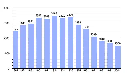 Gráfica de evolución demográfica de Cagnano Amiterno entre 1861 y 2001 |