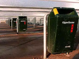 En Alemania, las cabinas sexuales también suelen contar con áreas para asearse y ducharse.[2] Las autoridades controlan periódicamente las cajas para mantener alejados a espectadores y mirones, ya que el área alrededor de las cabinas está destinada exclusivamente a las prostitutas y a sus clientes. A principios de 2011, la ciudad de Bonn trasladó sus instalaciones anteriores a una nueva "zona de actuación" en otro lugar que, desde entonces, ha sido la única zona de la ciudad donde se puede contratar a prostitutas callejeras. Las prostitutas solo pueden sostener las conversaciones iniciales pertinentes entre las 8 p.m. y las 6 a.m. en una sección adyacente de la calle. Un servicio de seguridad privada contratado por la ciudad protege la zona puesta a disposición de las mujeres de forma gratuita.[18] Sin embargo, la condición para usar las cajas es que las prostitutas deben pagar un impuesto de 6 euros por noche, que la ciudad introdujo a principios de 2011. Desde mediados de 2011, esta obligación se puede cumplir comprando un boleto en una máquina de boletos de impuestos, una máquina de boletos de estacionamiento especialmente reconvertida por la administración de la ciudad.[19][20] Tres años después de la introducción de las cajas, la ciudad de Colonia arrojó un saldo positivo, señalando que las prostitutas tuvieron un aumento significativo en la atención médica y que difícilmente eran víctimas de delitos violentos.[6]
