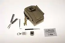 Kit de supervivencia especialmente diseñado para miembros de operaciones especiales, en este caso se incluye un cierto número de herramientas de supervivencia, tales como [corte de metales, equipo de pesca, una hoja cerámica, un abridor, palillos, brújula, y una herramienta multi-uso.