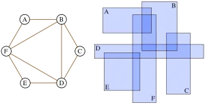 Si un grafo bipartito tiene cajeidad dos, se puede representar como un grafo de intersección de segmentos de línea recta paralelos al eje en el plano.[4]