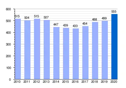 Gráfica de evolución demográfica de Cala d'Or entre 2010 y 2020 |