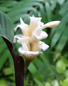 Son plantas caulescentes, que alcanzan un tamaño de 0.5–1.2 m de alto. Hojas basales 3–7 y (1) 2 (3) caulinares abrazando la inflorescencia por encima de un entrenudo alargado de 35–105 cm de largo, láminas 8–47 cm de largo y 4–21 cm de ancho, ápice acuminado, verde obscuras con diseños en forma de cola de pescado y verde-amarillos a lo largo del nervio principal de la haz, tomentoso-velutinas y moradas en el envés; pulvínulo, pecíolo y vaina tomentoso-velutinos, morados. Inflorescencias cilíndricas, 3.5–7.5 cm de largo y 3–5.5 cm de ancho, brácteas 4–16, persistentes, recurvadas en el ápice, tomentosas en la superficie externa y en los márgenes recurvados, blancas o amarillentas, matizadas de morado con la edad, flores cerradas, blancas; sépalos 26–33 mm de largo; tubo de la corola 26–35 mm de largo. Cápsulas obovoides, redondeadas, blancas, sépalos persistentes; semillas grises.[1]