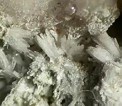 ![]() Calcioancilite-(Ce). Cantera Poudrette, Mont Saint-Hilaire, Rouville, Montérégie, Québec, Canada. Ancho de imagen 3 mm | ||