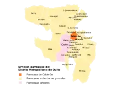 La actual parroquia de Calderón fue desde inicios de la república hasta 1897 parte de la parroquia de Zámbiza, limitando al oeste con Cotocollao y al este con Guayllabamba.