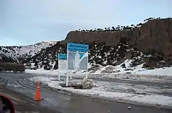 Vista desde la aduana argentina en el interior de la caldera hacia el precipicio que forma su borde